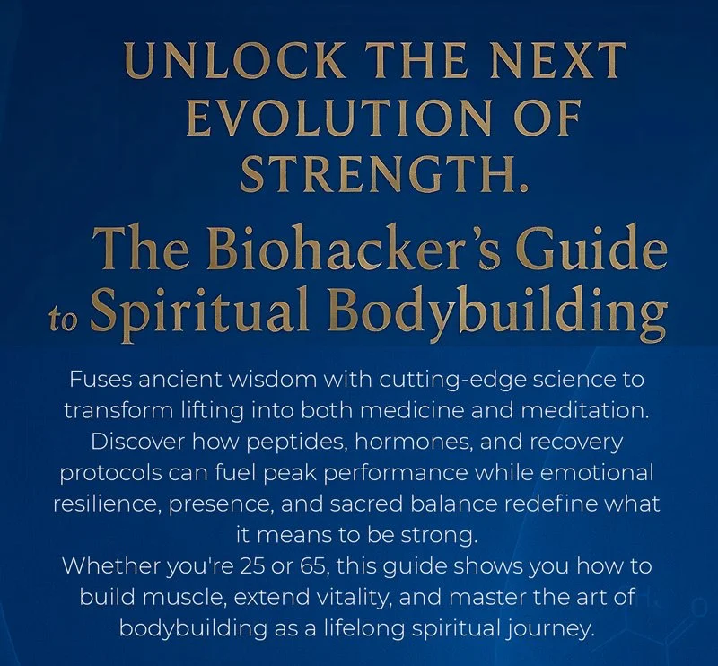 The Biohacker’s Guide to Spiritual Bodybuilding invites you into a new era of strength — where ancient wisdom meets modern science, and where lifting iron becomes both meditation and medicine. Drawing on cutting-edge insights into peptides, hormones, recovery, and the Bohr effect, this book reveals how to train the body for power while honoring the mind and spirit for balance. From optimizing liver, kidney, thyroid, and hormone health to cultivating presence in the gym, emotional resilience, and a sacred relationship to food and rest, this guide redefines what it means to be strong at every age. Whether you are 25, 45, or 65, you will discover how to move beyond ego-driven extremes into a sustainable path of vitality, longevity, and spiritual alignment — transforming bodybuilding from a pursuit of muscle into a journey of self-mastery
